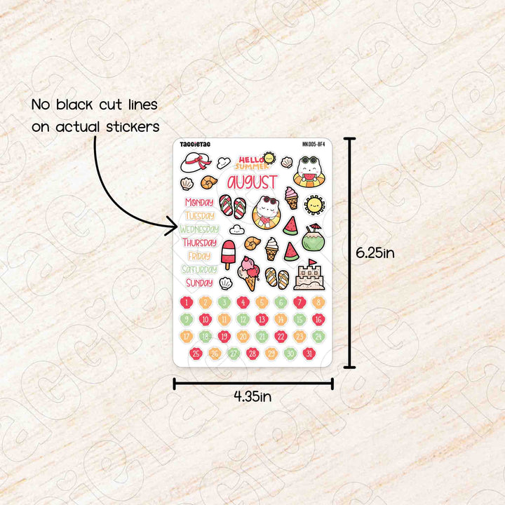 Soak up the summer vibes with our August Summer Planner Sticker Kit! Bursting with bright orange, green, and red tones, this kit captures the playful energy of August with fun seasonal elements and essential planning stickers.